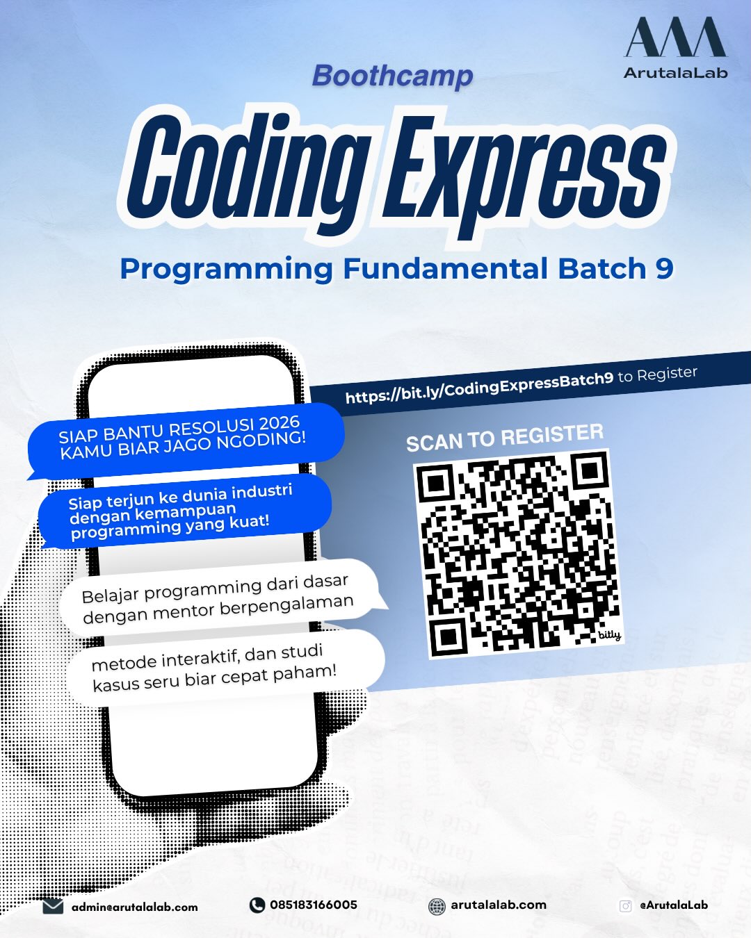 Coding Express adalah program pembelajaran intensif yang dirancang untuk membangun fondasi pemrograman secara terstruktur dan aplikatif dalam waktu singkat. Peserta akan mempelajari konsep fundamental komputasi, logika algoritma, serta praktik implementasi menggunakan Java. Course ini menekankan pemahaman cara berpikir komputasional, kemampuan tracing dan debugging, hingga menerjemahkan algoritma menjadi kode program yang siap dijalankan. Cocok untuk pemula yang ingin memulai perjalanan di dunia pemrograman dengan dasar yang kuat dan sistematis.
